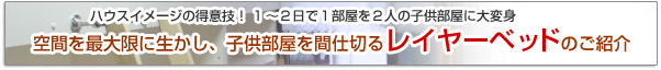 レイヤーベッドで7畳の空間を2室の子供部屋に